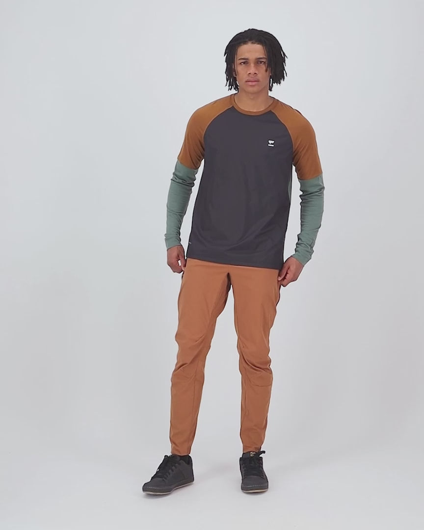 White-knuckle downhill or wind picking up, the Tarn Merino Bike Wind Jersey keeps your state in flow. Engineered with Merino Shift to wick sweat. Topped off with 100% recycled Pertex® Quantum panels to repel rain. Ride on.